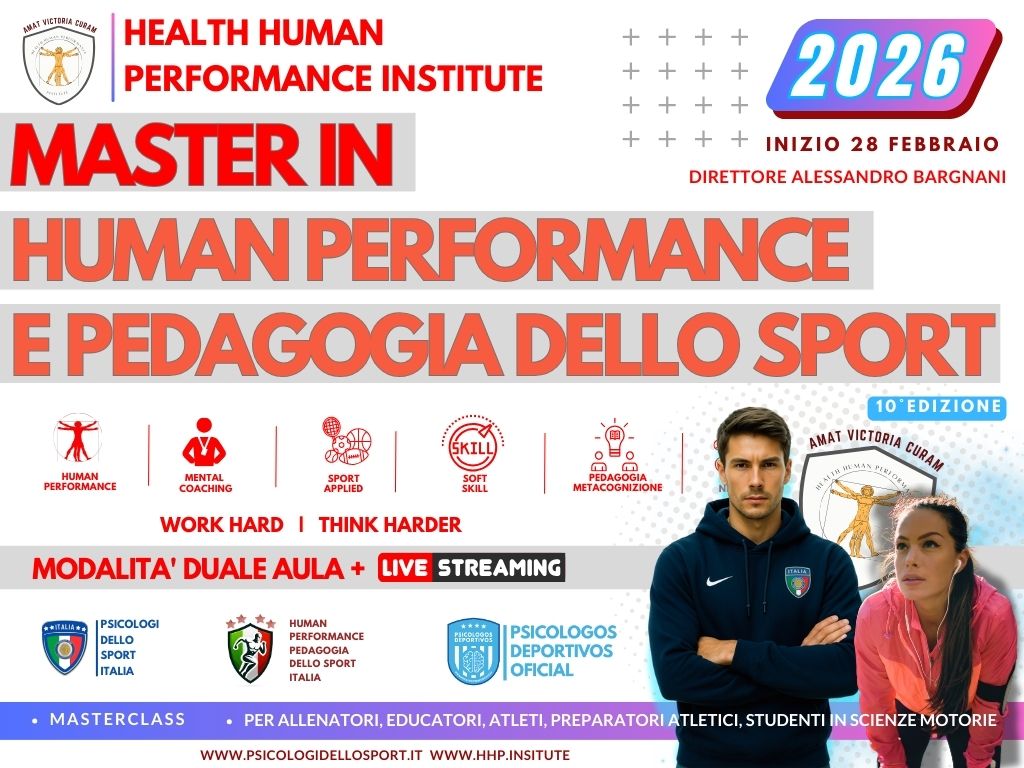 Master Ufficiale in Human Performance e Pedagogia nello Sport 10° edizione. Master con durata annuale avrà inizio sabato 28 Febbario 2026. Percorso per Atleti, Allenatori, Preparatori atletici e tutte le figure del mondo sportivo